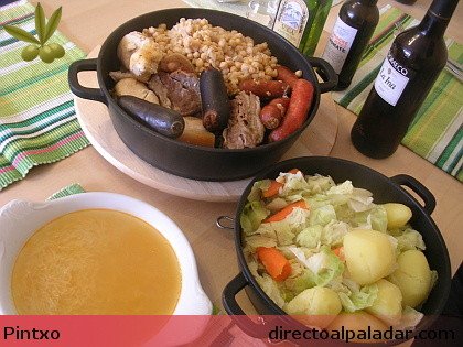 Empezaremos por poner a cocer, partiendo de agua fría, la carne, la punta de jamón, la panceta, el pollo (caparazón y pechugas).