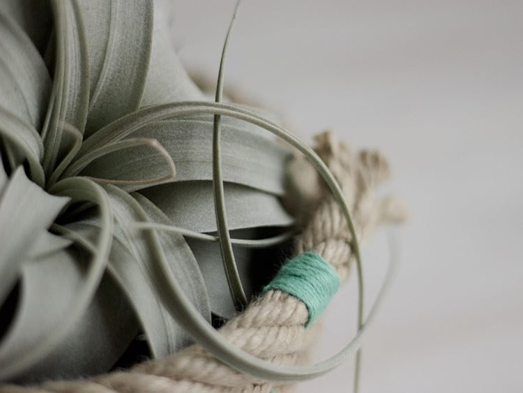 Si quieres, puedes ir poniendo trocitos de hilo de colores de vez en cuando para decorar tu maceta: yo lo hice enrollando hilo en algunas partes de la cuerda (60 cm) y, para asegurarlo, simplemente hice un nudo en la parte interior para que no se viese.